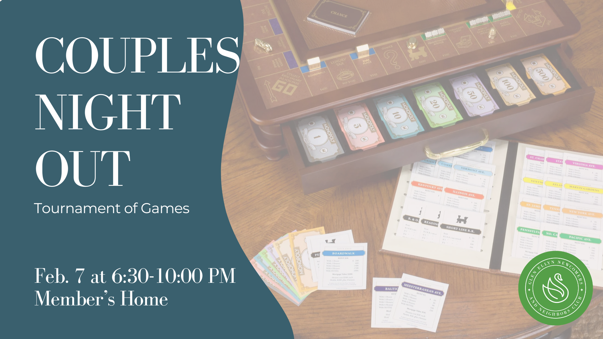 Back by popular demand... Couples Night Out is hosting a "Tournament of Games" Saturday, Jan 17th at 6:30 pm. This is not your average board games game night - these games will be active and interactive so bring your game face! Cozy up and wear athleisure, your silliest onesie or your coziest pajamas. While outfits are chill, competition will be fierce.
