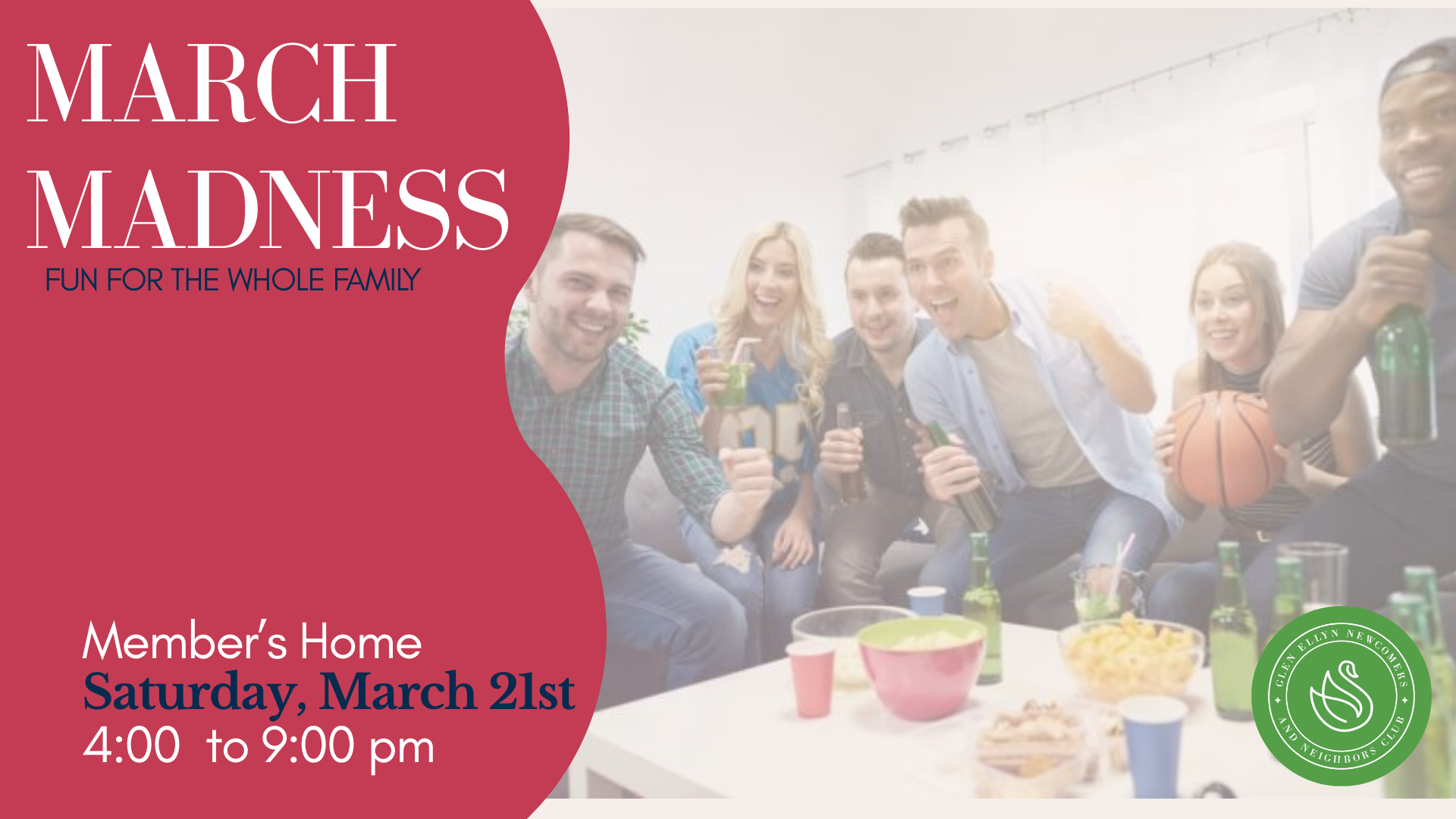 Everyone is welcome, including partners and kids. Enjoy watching all the March Madness games on split screen TV or just hang out for some good times! There will be a sitter for the kids in the basement. We'll have pizza, apps, desserts and we’ll have some beverages on hand, but please feel free to BYOB so you have your favorites. Looking forward to seeing everyone! Katheryn Meagher's family is hosting, please RSVP/Register for the address.