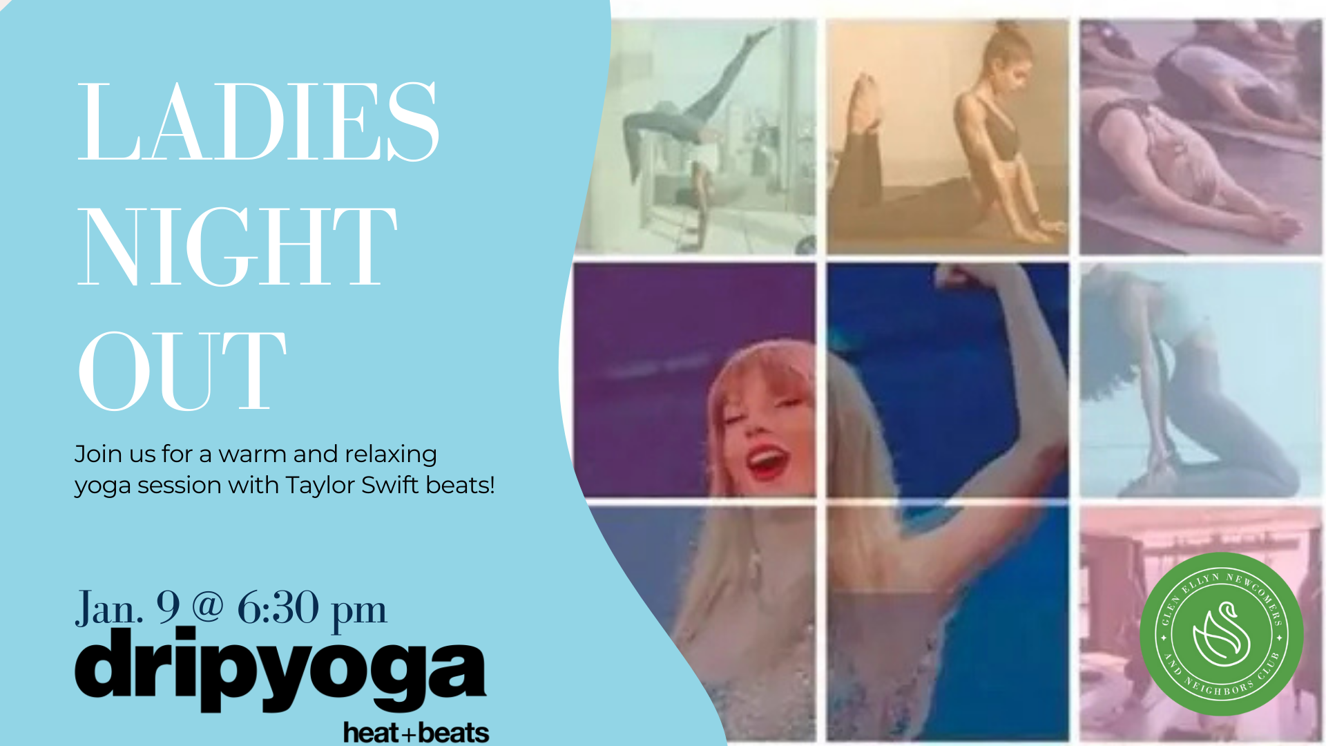 Join us for a warm and relaxing Ladies' Night Out on January 9th! Start the New Year feeling centered and strong with a hot gentle-flow yoga class set to the music of Taylor Swift. Melt away the winter chill as you move through slow, restorative stretches in soothing heat. All levels are welcome, and no prior yoga experience is needed. Come solo or with friends—just be ready to unwind, reset, and feel amazing for 2026.